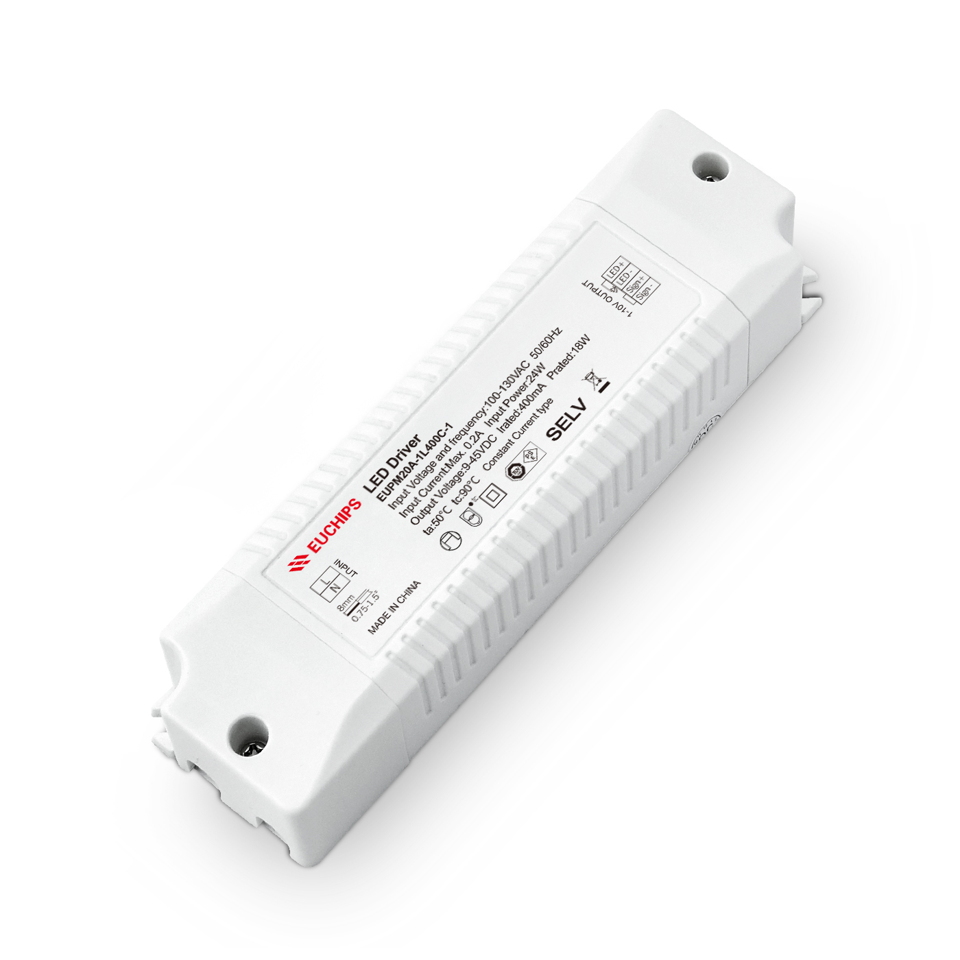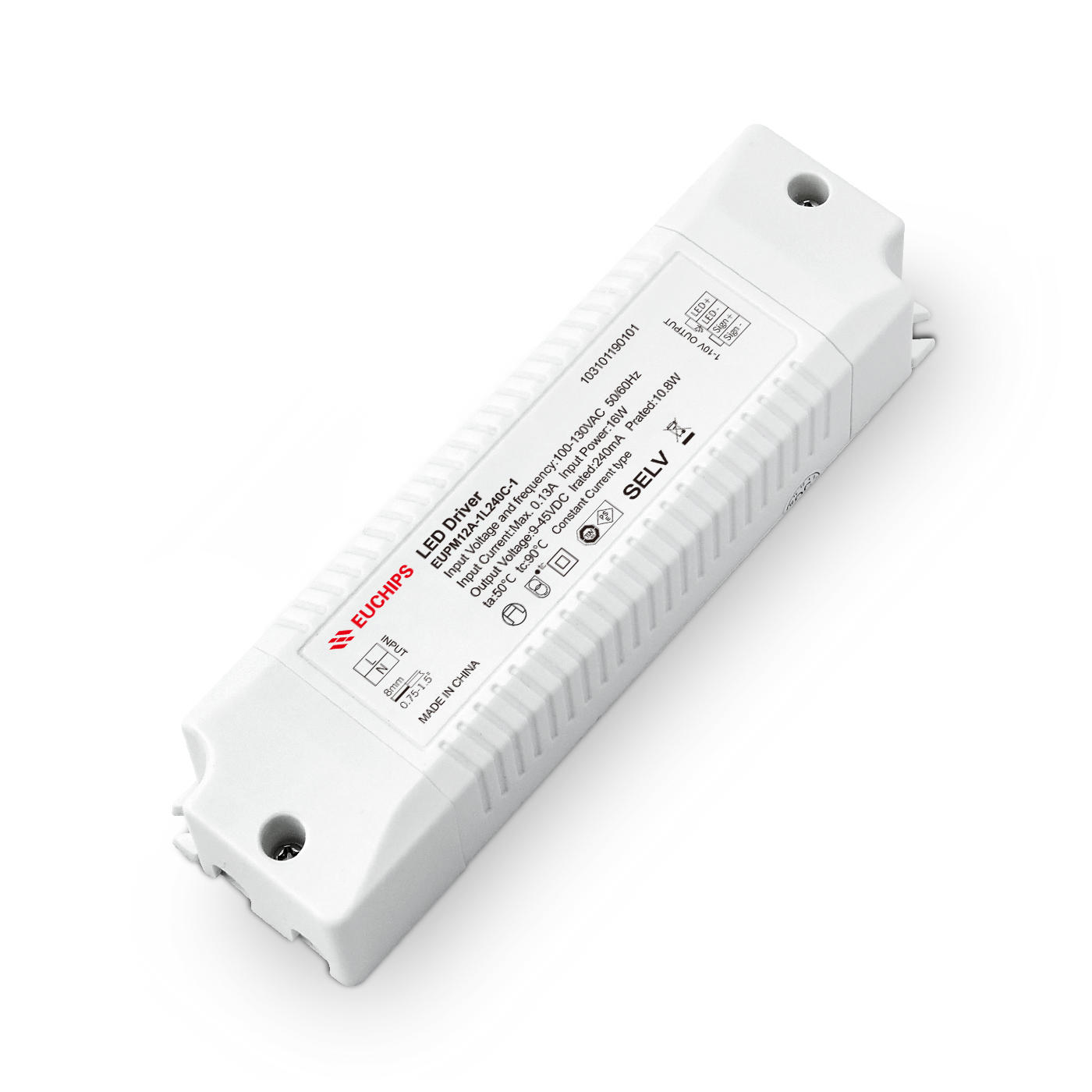 输入电压:100-130V 输出电压:9-45V 输出电流:240mA 型号:EUPM12A-1L240C-1 -